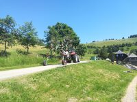 Wir sind Dagmar und Harald Riesterer und haben eine Tochter und einen Sohn. Gemeinsam bewirtschaften wir unseren Betrieb im Nebenerwerb. Das bedeutet, dass wir regulär arbeiten gehen und die anfallenden Tätigkeiten der Landwirtschaft nach der Arbeit oder am Wochenende erledigt werden. Das ist bei einem Betrieb mit 55 ha und jeder Menge Tiere nicht wenig. Aber es macht uns Freude und wir lieben dieses Leben hier oben.